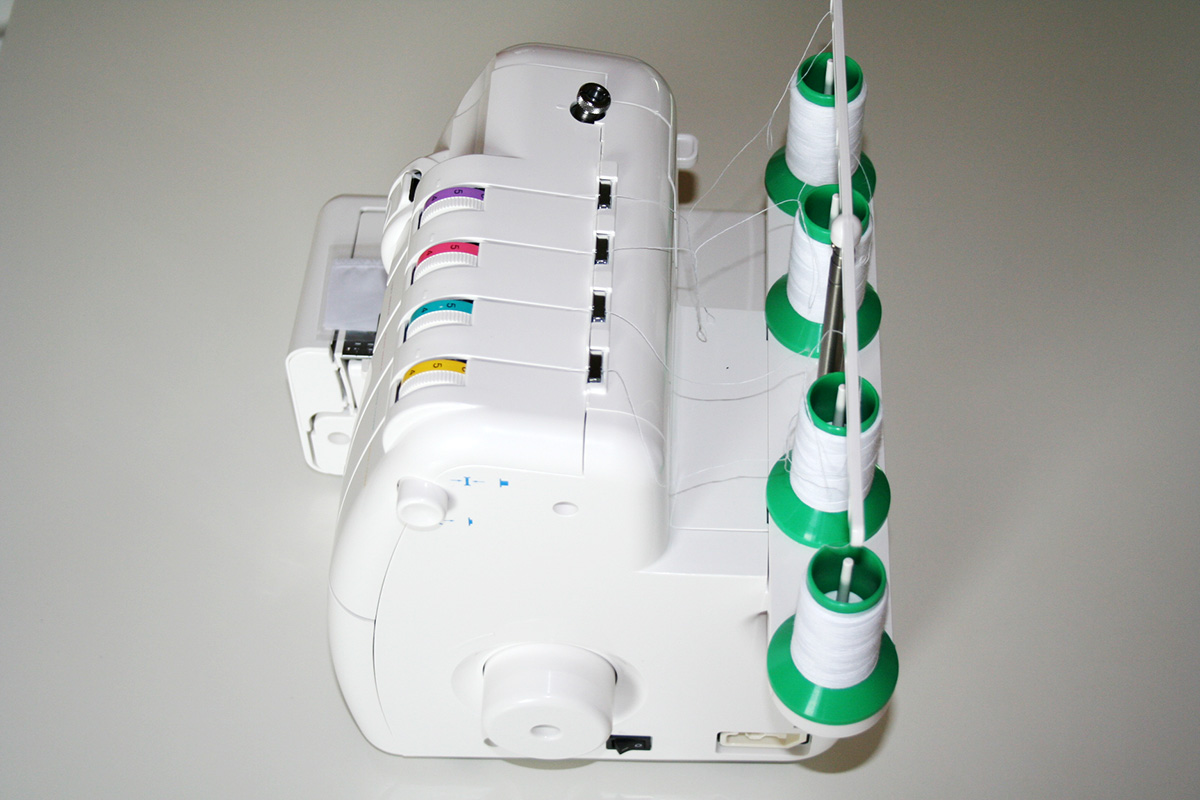 Kurz noch etwas zum Einfädeln: Zwar wird die Overlock-Maschine fertig eingefädelt geliefert, dennoch kann es passieren, dass eine oder mehrere Nähte reißen. In dem Fall nicht die Fassung verlieren. Nehmen Sie die Bedienungsanleitung zur Hand und arbeiten Sie sich langsam durch. Beim ersten Mal kann es 30 Minuten dauern bis das Gerät wieder korrekt eingefädelt ist.